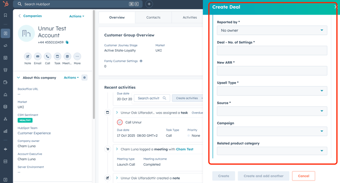 - Deal name: You will find that this is automatically pre-populated. You can ignore this property since the Deal Name should automatically change to “<Company Name> - <Upsell Type>” in the overview once you’ve completed the deal creation.