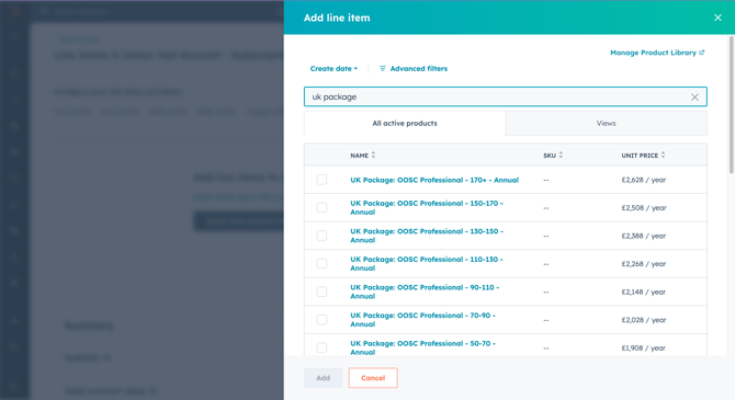 The line item page will open that allows you to input the package-related details. Click Select from product library. A window will open from the right where you have to choose the relevant package.